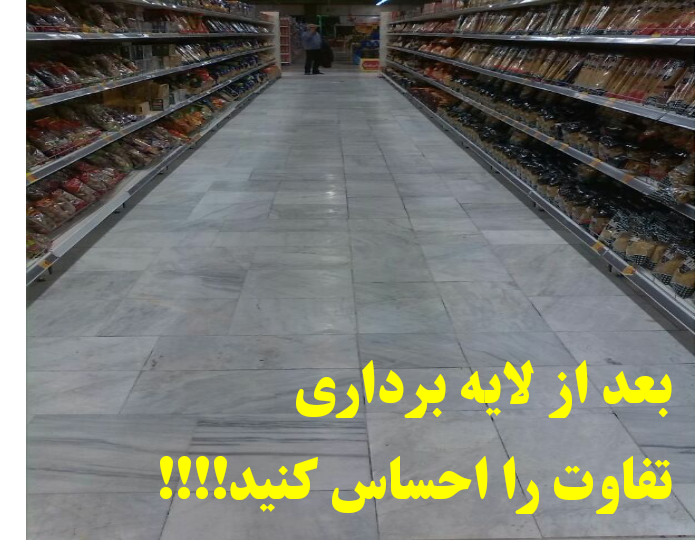 • رفع کدری سنگ کف با استفاده از ساب ایتالیایی بطوری که بعد از اتمام عملیات کف سابی عکس خود روی کف میتوان دید.
